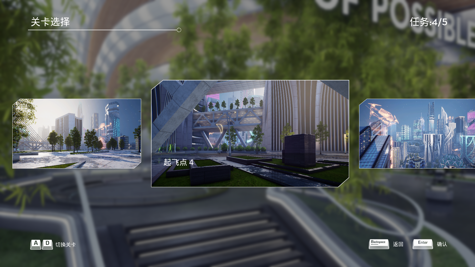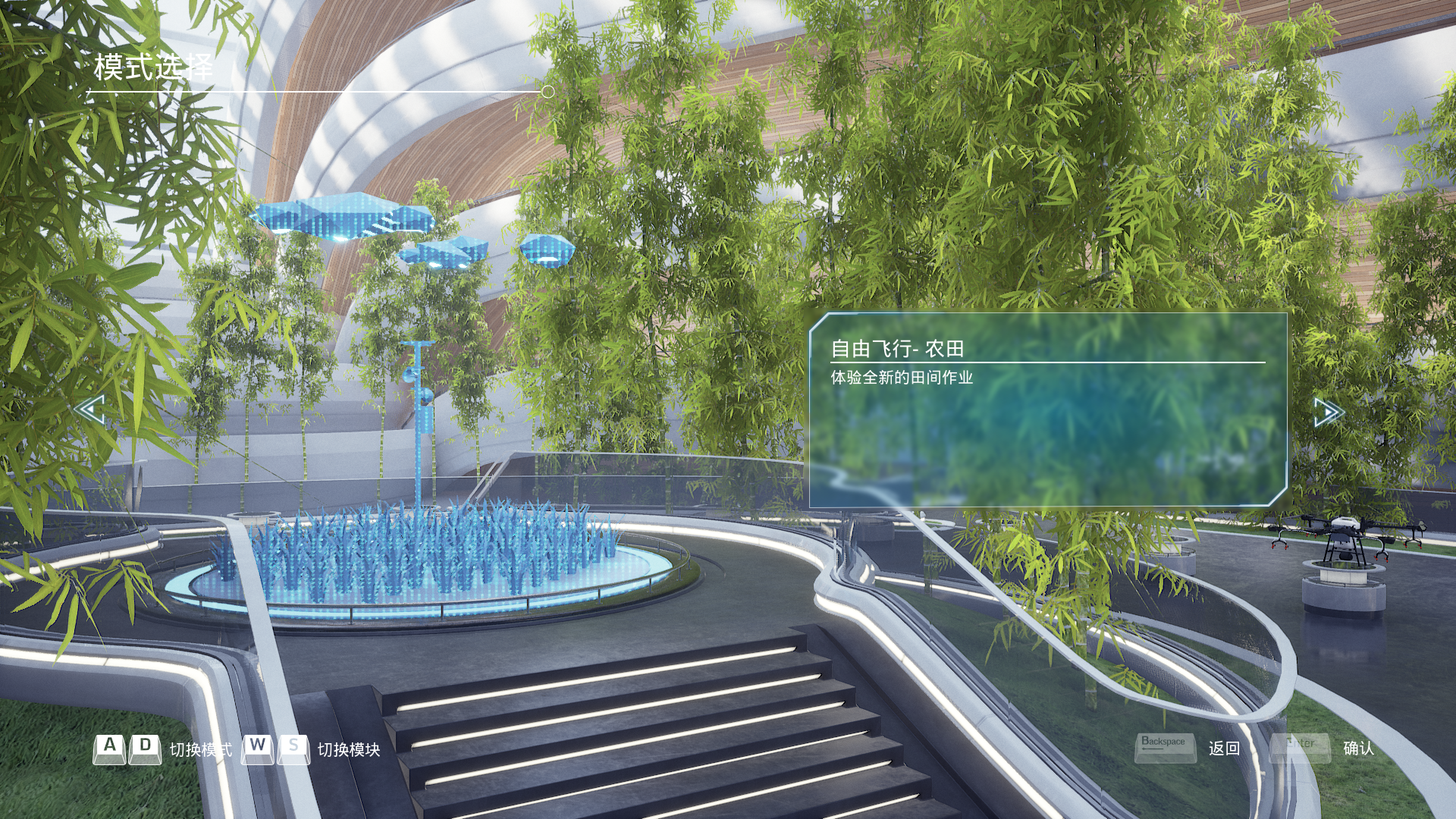 好,我们已经进入了游戏,这里面有几个选项,技能训练,自由飞行,娱乐,应用训练等