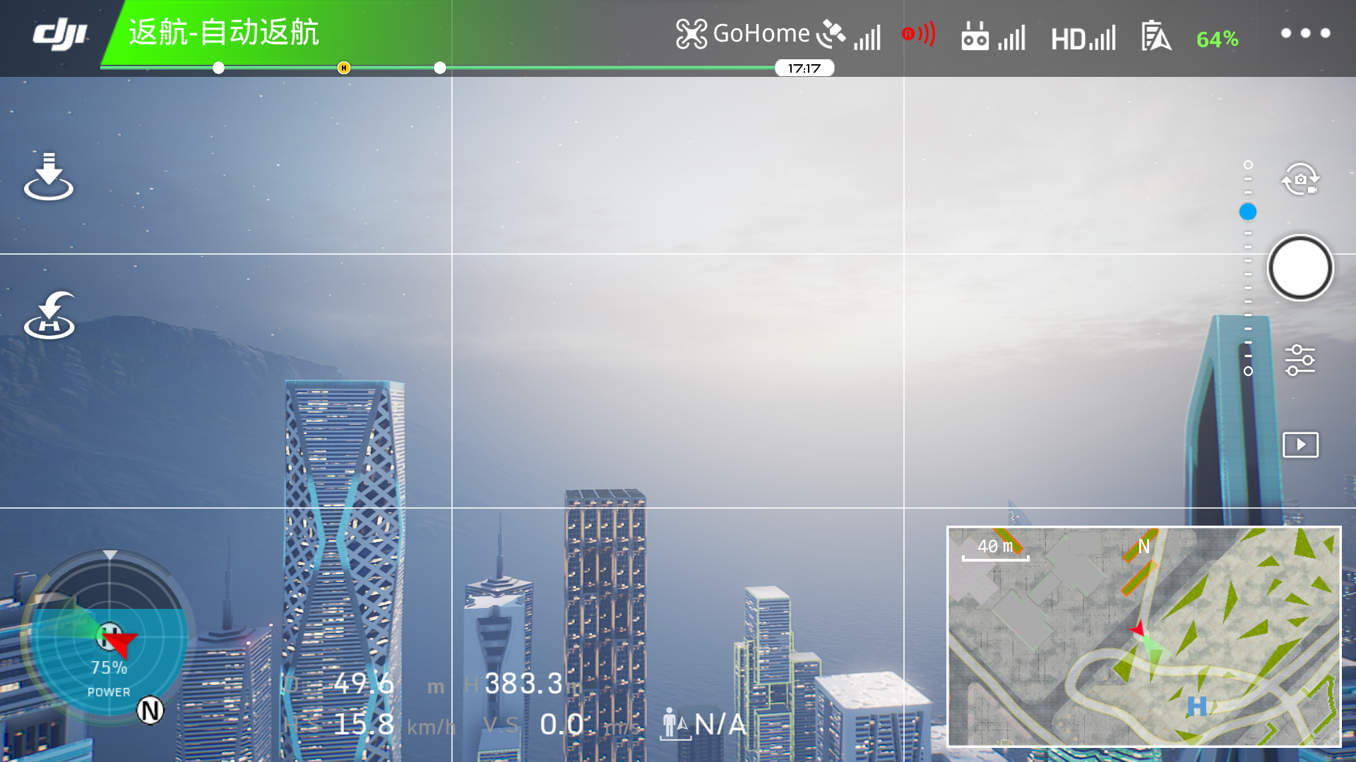 玩过大疆无人机的都知道啊,就是两个拉杆外掰就启动发动机(同时按下sa和下右),左边拉杆上下左右的键位是wsad,右边拉杆是上下左右方向键
