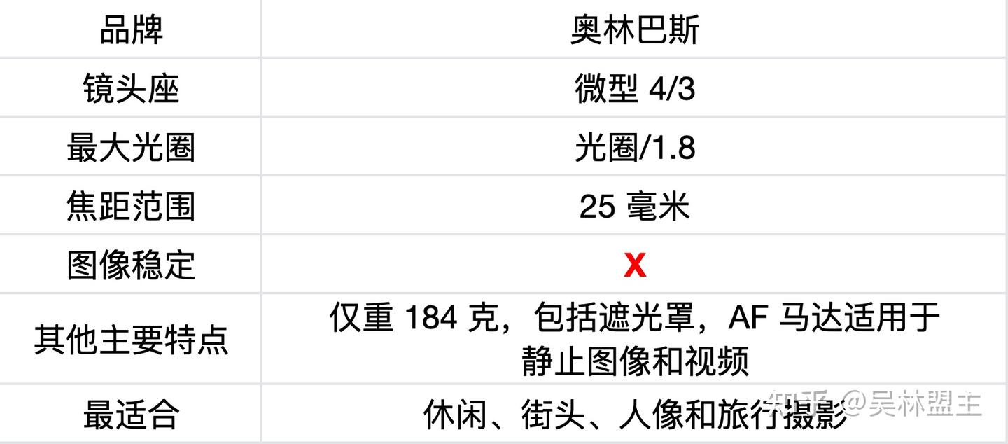 1. 奥林巴斯 25mm f/1.8 定焦镜头