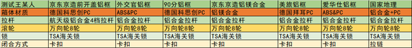 行李箱材质铝合金最为结实和抗挤压,看起来会很高端,但铝合金也没有想象的那么好,掉漆、变形、自重大