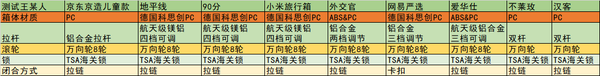 行李箱的材质依旧是PC性价比最好,轻薄、坚韧、抗撞击,耐得住极限温度,价格也合适,从性价比和实用性角度来说:PC>PC+铝框>PC+ABS>ABS>铝合金