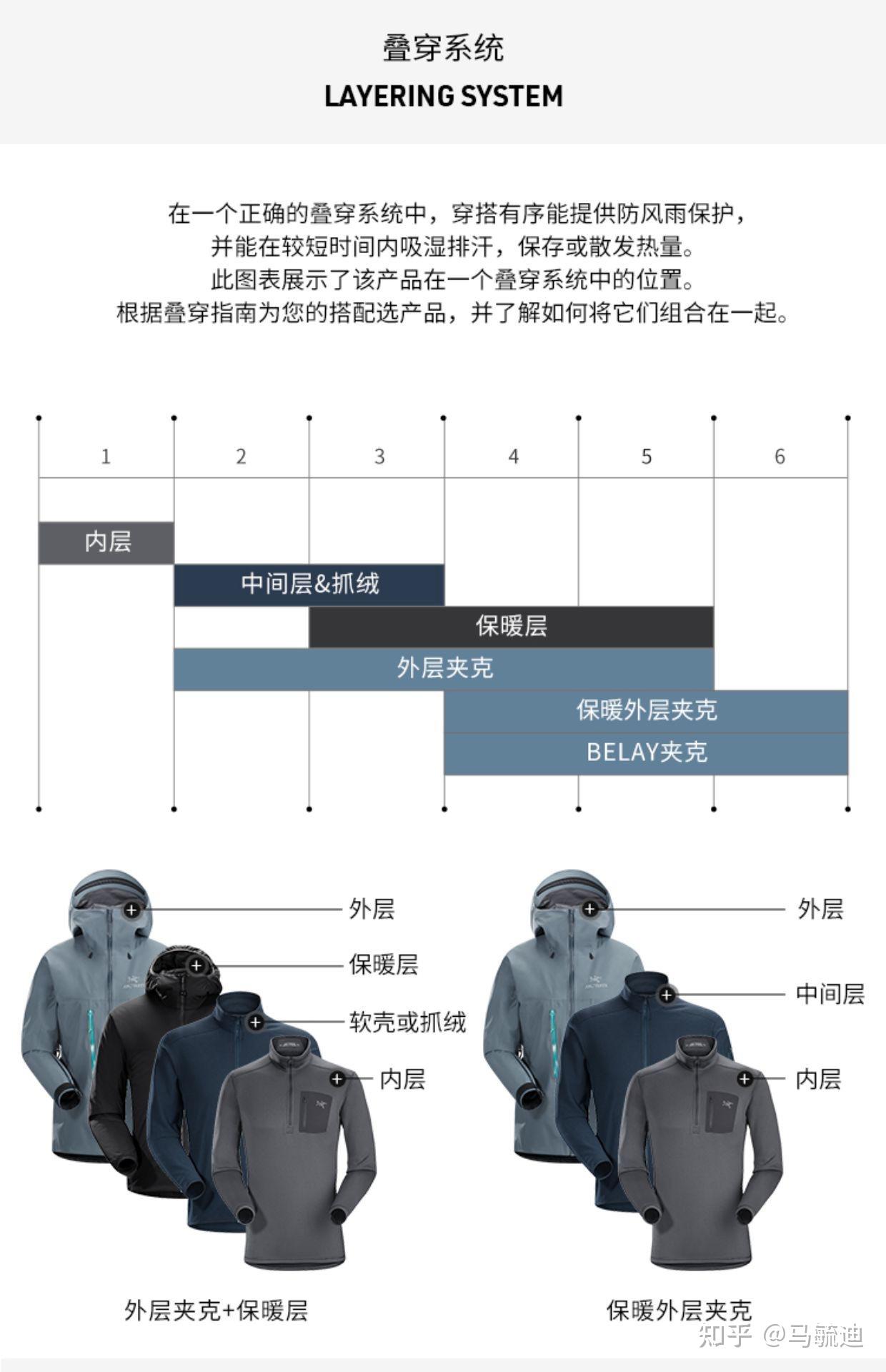 外层指的是个硬壳,或者羽绒大外套保暖层一般是棉服,或薄款羽绒中间层一般是软壳或抓绒外套/卫衣,超薄棉服/羽绒内层一般是具有吸湿速干属性的打底衫值得注意的一点是,鸟家的功能体系带来的一个效果就是,同一款衣服的不同功能后缀,可能会影响这件衣服的穿搭属性。