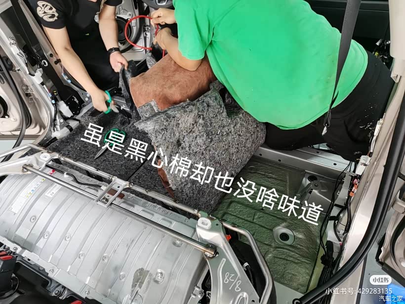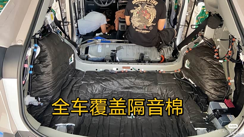 具体的施工方案就是:第一步:在发动机盖、车顶、五门(含尾门)、车内底盘铺贴止震板;第二步在内饰空腔填充隔音棉;第三步在铺贴止震板的基础上再铺贴一层隔音棉。老板说大概增重20kg左右,我觉得还是可以接受的。