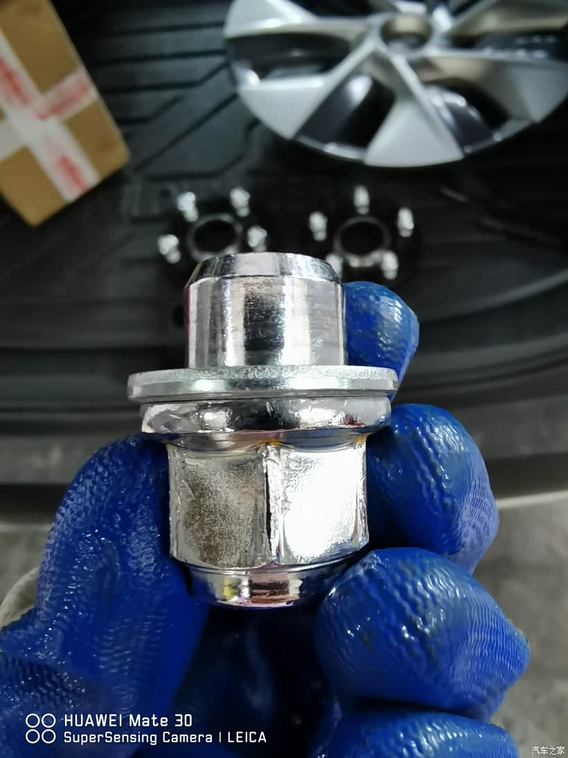 五、一些心得体会1.轮子几乎是完美兼容,但还有两个小问题需要注意:一个是螺母形状不一样,丰田是平头,特斯拉是锥面(但可以拧紧),第二个是两个轮毂ET值不同(特斯拉ET45,丰田ET35),需要加宽,否则会蹭刹车。好在做研究的时候提前考虑到了,准备了15mm法兰盘和对应的螺母。