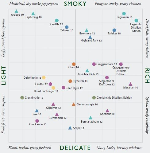 威士忌风味特点这个图基本上涵盖了常见的威士忌风味特点