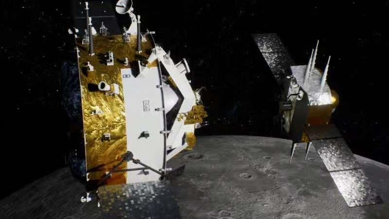 此时,轨道器携带返回器留轨,与着陆上升组合体分离。着陆器和上升器组合着陆到月球表面后,伸出机械臂进行采样,预计采集2公斤左右,然后封存到上升器。