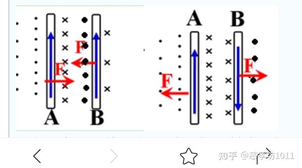 2.左手定则:伸开左手,使拇指与其余四个手指垂直,并且都与手掌在同一平面内;让磁感线从掌心进入,使四指指向电流方向;拇指所指方向就是通电导线在磁场中所受安培力方向,左手定则经常被用来判断磁场对运动电荷、电流有作用力,下图为两通电导体相互作用力情况。