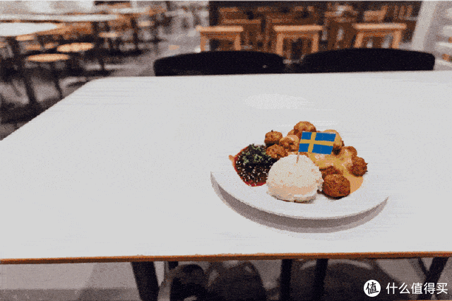最先要说的就是这个插着瑞典国旗的小肉丸啦,宜家的招牌主食,一盘15个,楼主一个人就能全吃掉,绝对是那种让你吃了还想吃的美食!咬上一口就知道不是淀粉做的,而是实打实的纯牛肉,肉质特别紧实,口感Q弹香浓。撒了奶油沙司和蔓越莓酱汁后再搭配上土豆泥,解腻又饱腹,超赞!有人说不喜欢那个蔓越莓酱,其实那是给土豆泥准备的,用土豆泥蘸着吃就好吃多啦~