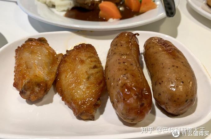 香烤鸡翅也是楼主每次必点的,3块钱一个,买两个刚刚好,属于宜家从未下架过的保留菜色。嫩而入味,微辣带甜,奥尔良烤翅的味道,比起肯德基售卖的价格,性价比超高。盘子里一般会装好五个,打上15元,其实是可以单买的,跟服务员说一声就行,可以再搭配两根德国香肠,汁水多味道重,朋友很爱吃,个人觉得一般。