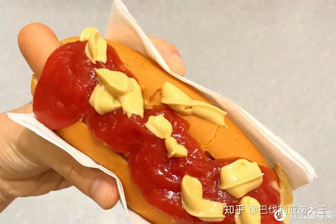除了冰淇凌外,这个最受欢迎了。刚拿到手的热狗有点朴素,一定记得去旁边的自助酱料处挤喜欢的酱汁撒上去,不然口感会大打折扣。有番茄酱和芥末酱可选,也可以各挤一半吃,喜欢里面夹杂的酸黄瓜,解腻!