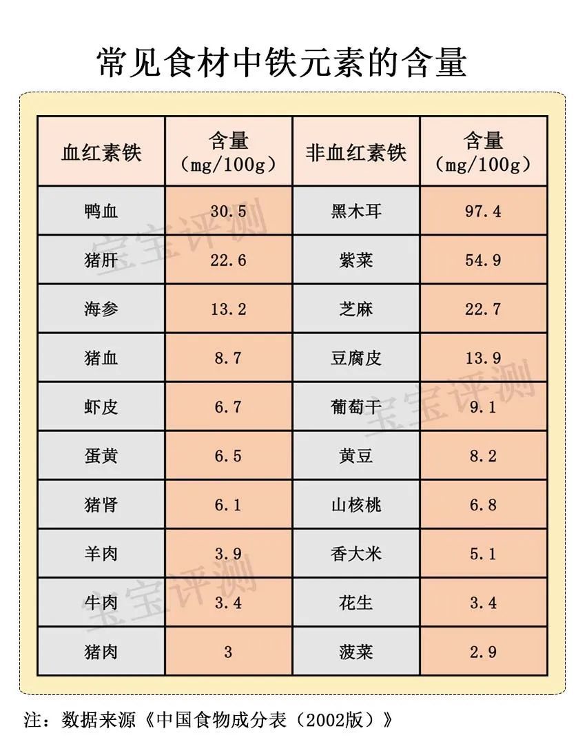 这其中,鸭血、猪肝、猪血、红肉等食物中,富含血红素铁,是比较合适的辅食佐料,在煮粥或者面条的时候,可以加入这些食物,以促进宝宝铁的吸收。