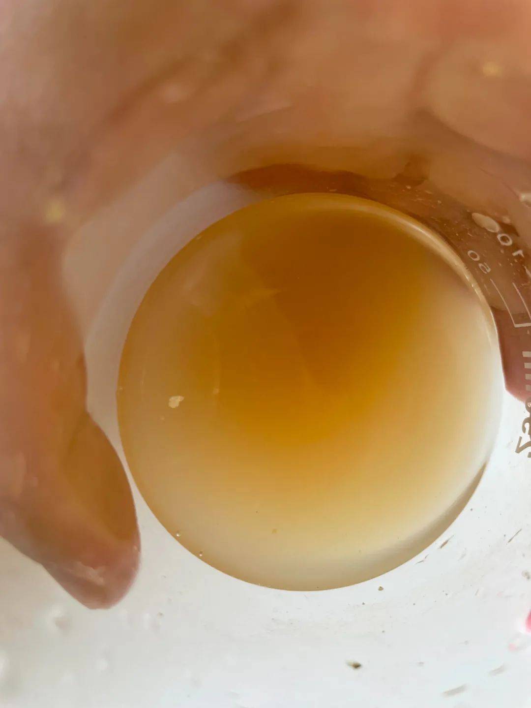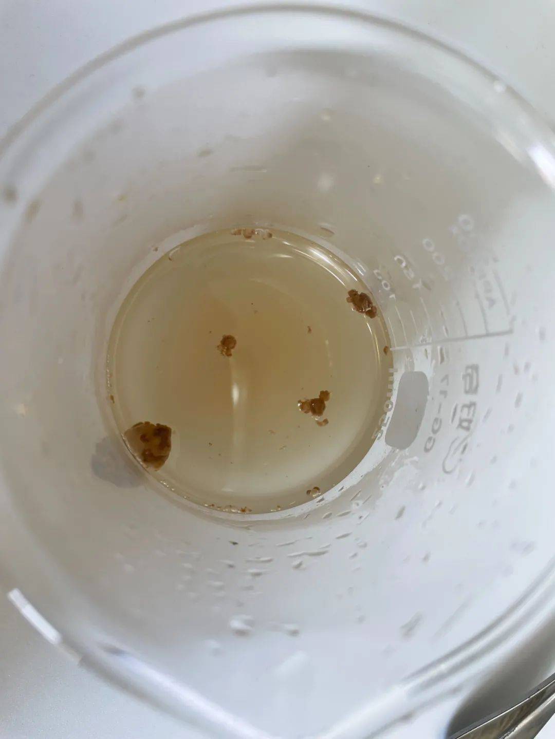 3、星圃原味猪肝粉,这款产品在性状口感方面表现不太好,口尝容易沾牙沾舌,溶解过程有结块,且有肉眼可见杂质。