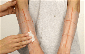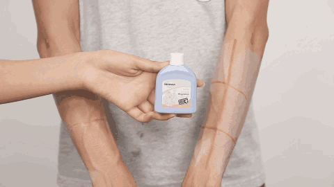 为了让效果更直观,我们把防晒霜涂在测试人员手臂上停留4小时,做了4次实验。