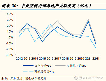 2014年以后,中央空调行业地产后周期属性更加明显,增速节奏基本滞后于地产市场1年左右。原因是2014年以后家用中央空调销售额占比持续上升,从2014年的28%上升至2019年的47%。