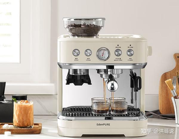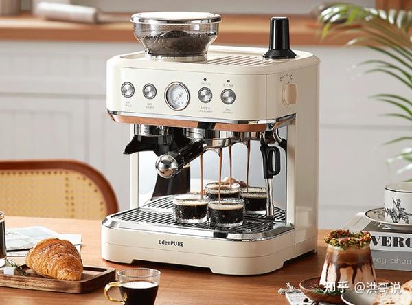 五、半自动咖啡机高品质型号总结推荐1:宜盾普EDC-KF1颜值和实力兼具的一台咖啡机,奶白色高颜值机身,配备了粉碗、拉花杯、压粉器等整套咖啡配件,对于专业用户和咖啡小白来说,都能轻松驾驭。
