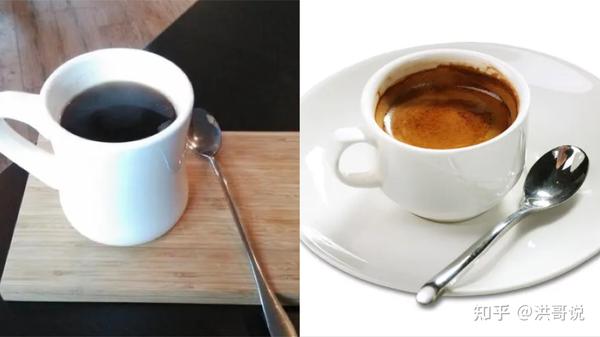 左为美式,右为意式浓缩常见的咖啡口味主要分为美式咖啡和意式咖啡。