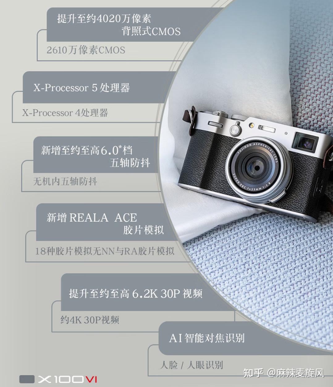 传感器从第四代提升到了第五代,像素从原来的2610W提升到了4020W,AI对焦不仅能识别人眼,还能识别动物、车辆、火车、飞机等快速运动物体。屏幕像素更高,防抖和续航更强。视频从以前的4K60P提升到了6K30P,支持双Flog录制,更高的动态范围调节。胶片模拟更新固件之后,支持20种内置滤镜,简直无敌!外观方面更加精致小巧,主打一个颜值与性能并存,XT4本身还是略显庞大了。唯一的槽点可能就是屏幕,从旋转屏改成了三折屏,对于有自拍需求的人来说就不是很方便。