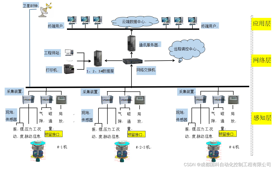GKRS8000水轮发电机组振动摆度在线监测系统,采用分层分布式结构,系统拓扑图如下: