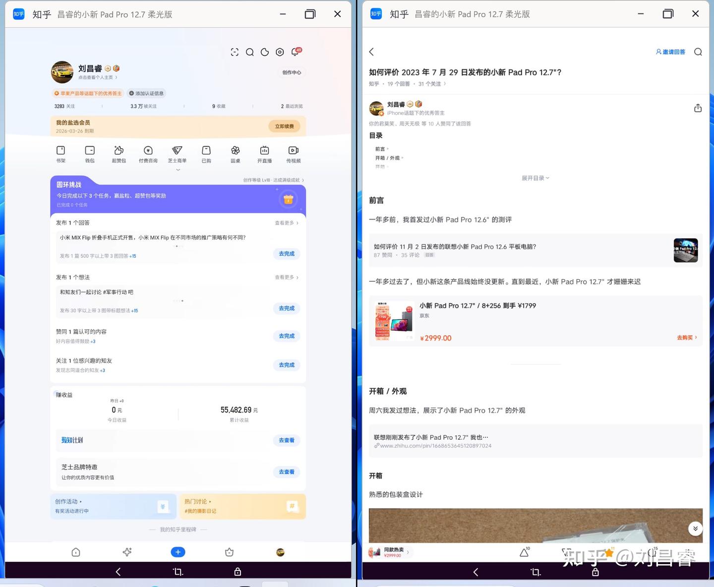 屏幕材质初代小新 Pad Pro 12.6" 采用当时独一档的 AMOLED、上代 Pad Pro 12.7" 又换了 LCD,这代总算摸索清楚了:沿用 12.7" LCD 的同时也在护眼上有了突破,做了柔光屏「舒视版」