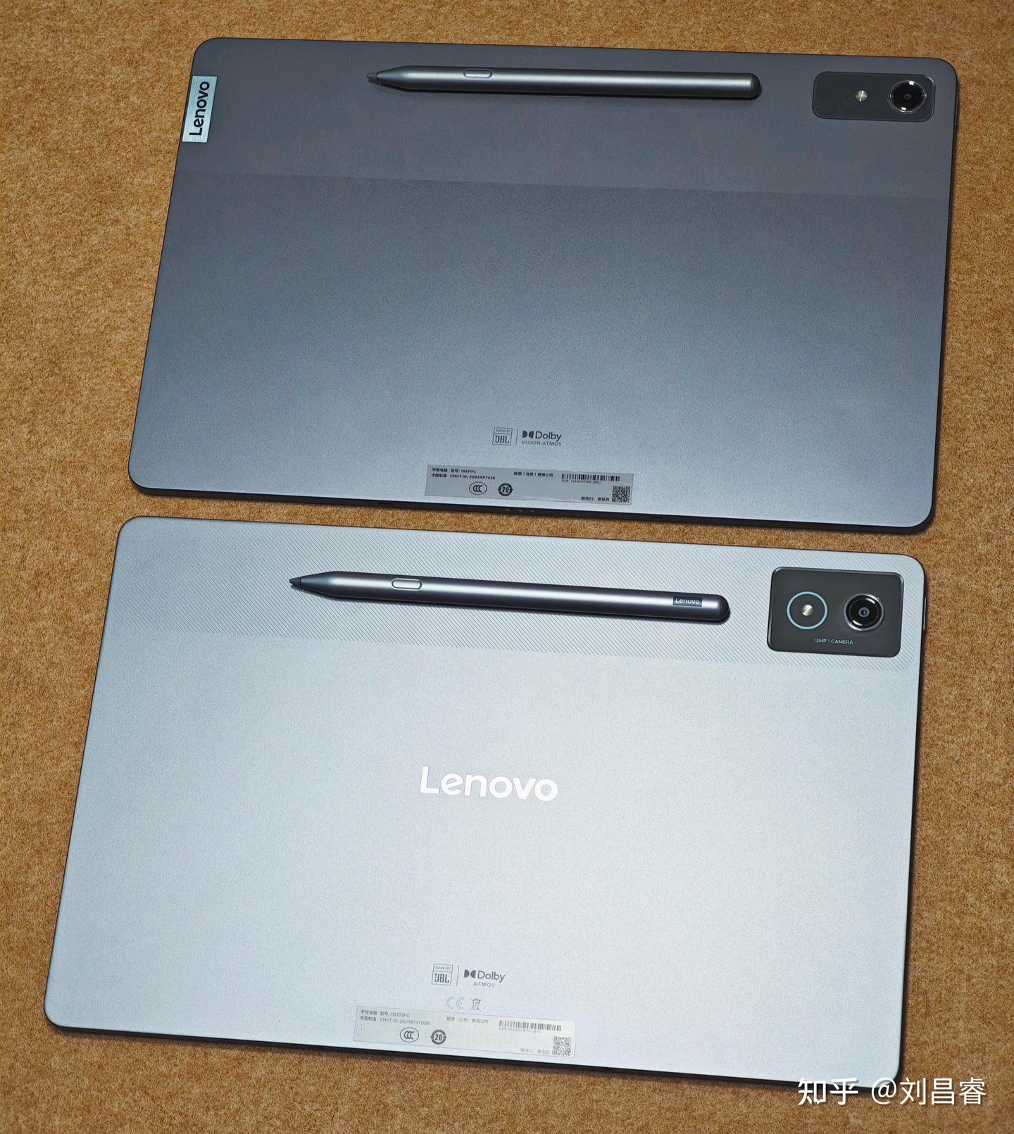 其实颜色区别没这么明显,打光问题机身采用全金属材质,设计简洁大方,后摄 Deco 延伸出一块带条纹样式的分区(此处还有手写笔磁吸位)Lenovo Logo 也从上部分区左侧移到了下部的纯色分区中心、底部还有 JBL / Dolby 标识