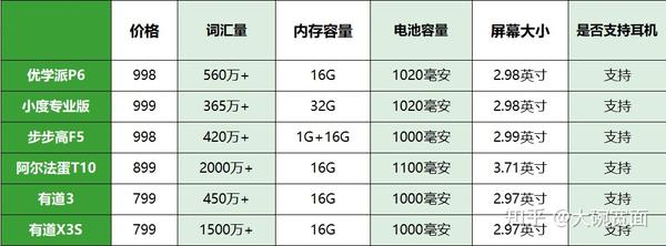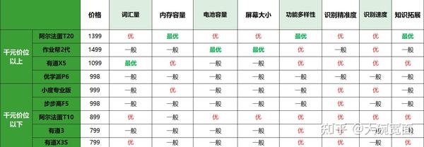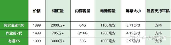 https://xg.zhihu.com/plugin/c8ea74cdb272247c01b9244ca6906bdd?BIZ=ECOMMERCE为9款产品中价格最低的一款,但配置却还说得过去,词汇量能达到1500万+,内存为16G,功能上相对同价位机型来说是相对比较多的,但相较于T20,还是要稍逊不少;
