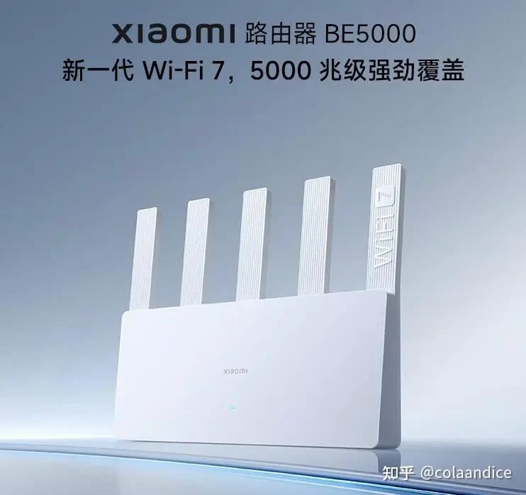 小米BE5000,使用联发科MTK的方案,内存512MB,:2.4G 2x2MIMO,2.4G的最高速度为688Mbps、5G 3x3MIMO。5G的最高速度是4323Mbps。在MLO多链路技术的加持下,双频带宽叠加下,可以达到5012Mbps。有的品牌会说标准是BE5100,有的是BE5000,实际规格一致,四舍五入的方法不同。外置5天线的设计。1个2.5G网口,3个千兆网口。速度更高,有WIFI7的技术加持,价格与入门级的WIFI6路由器相差不大。一台覆盖不够,多买1个组MESH,成本增加不高。数码产品,买新不买旧的状态下,新入手路由器,有2.5G网口需求的,可以选择这款。