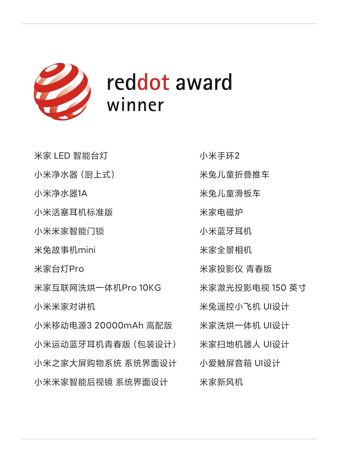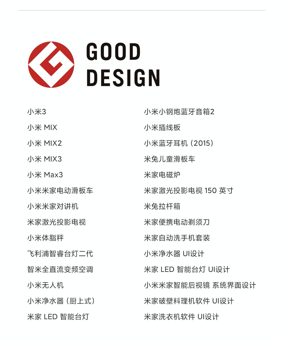 今天,小米当之无愧地成为智能生活的领导品牌,智能产品走进千家万户。而这一切显然不仅仅是工业设计就足够的,因为真正的体验升级必然是软硬件一体的。多项UI设计大奖,给予了小米智能家居的软件设计极大的肯定。