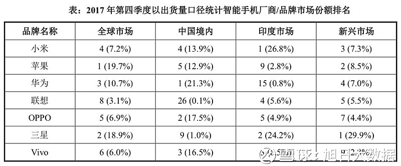 招股书显示,公司来自境外收入比例持续提高,主要系公司2014年开始推进国际化战略,陆续在印度、东南亚、东欧等新兴市场布局,尤其是印度市场取得了开拓性成功,2017年小米手机成为印度市场智能手机出货量份额最高的智能手机品牌。目前,小米手机进入了74个国家和地区,其中在15个国家和地区进入了市场前5名。