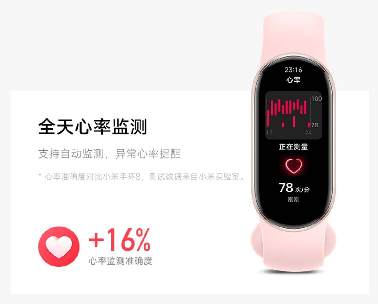 配置差异:小米手环9屏幕的区别是提升了一倍亮度,来到1200nit,支持自动亮度,其余参数和上代一致,软件上做了防水滴误触。