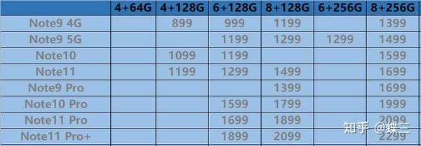 千元以上Pro级别:Note9Pro、Note10Pro、Note11Pro、Note11Pro+