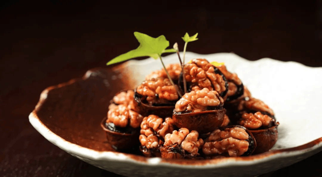 3. 取调配好的卤水汁1000克,放入核桃小火卤煮90分钟即可。