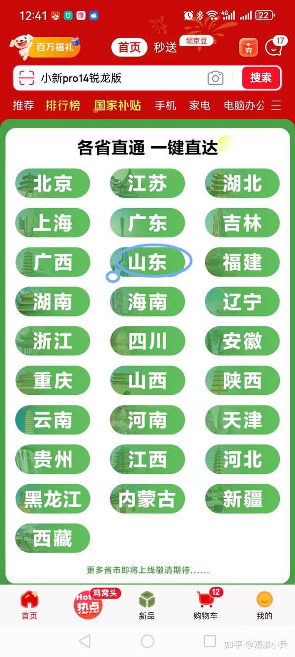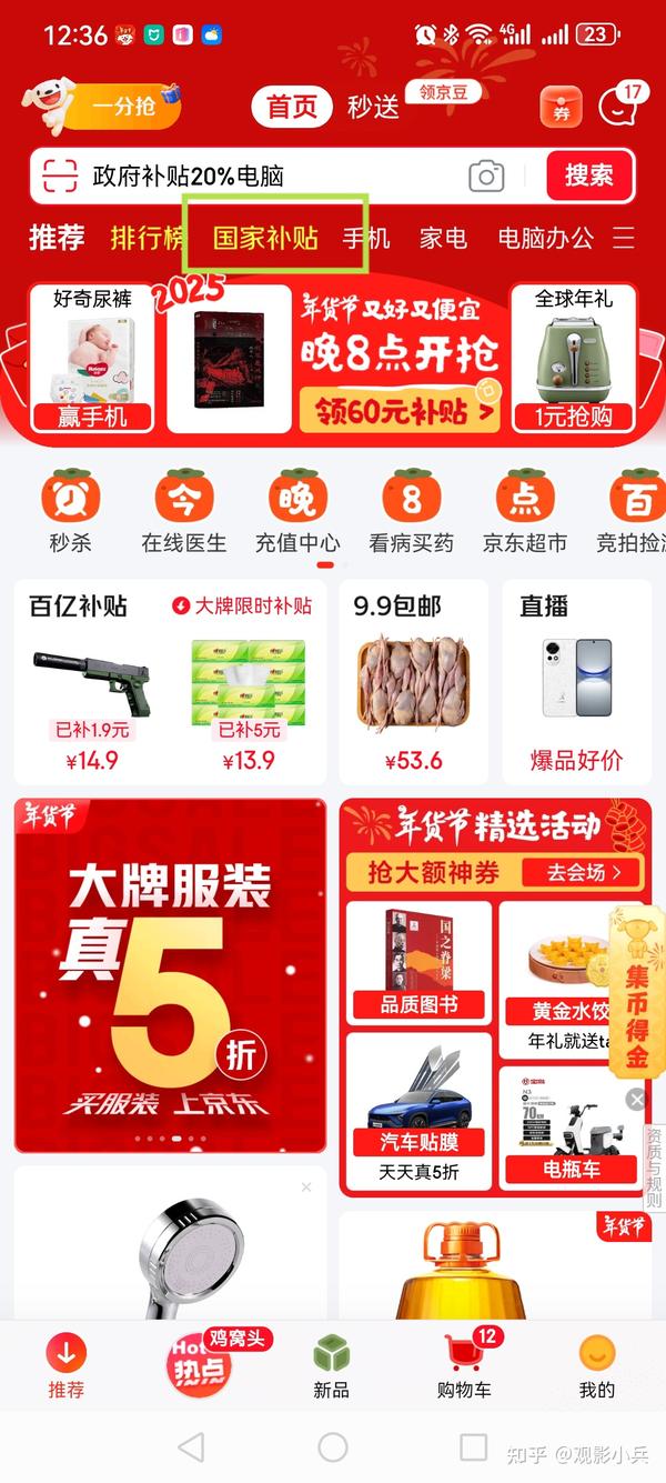 第二步,在京东app,查找想买的商品,咨询商品客服是否有国补政策,核实好后。点击京东app页面上方“国家补贴”。