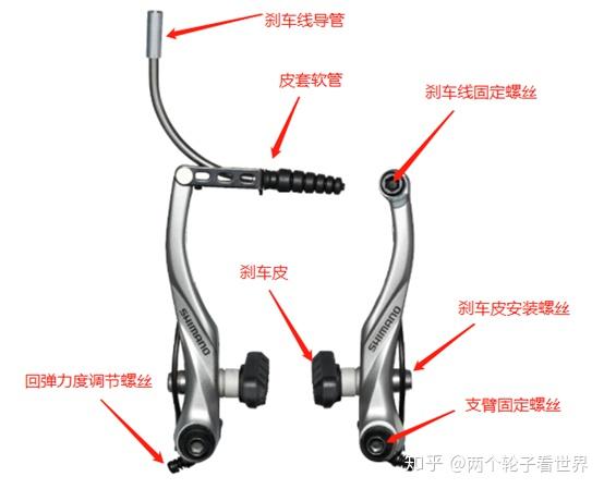 而且,随着刹车皮的摩擦,刹车皮会变薄,捏刹车把的幅度会变大,这个时候就需要调节V刹了。