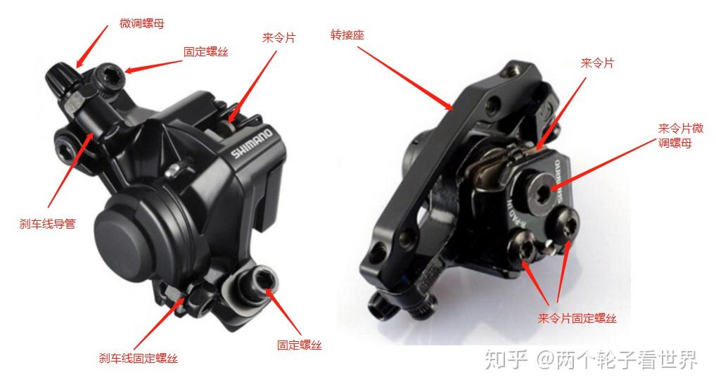 单侧或两侧有来令片微调旋钮,用来调节来令片的位置。