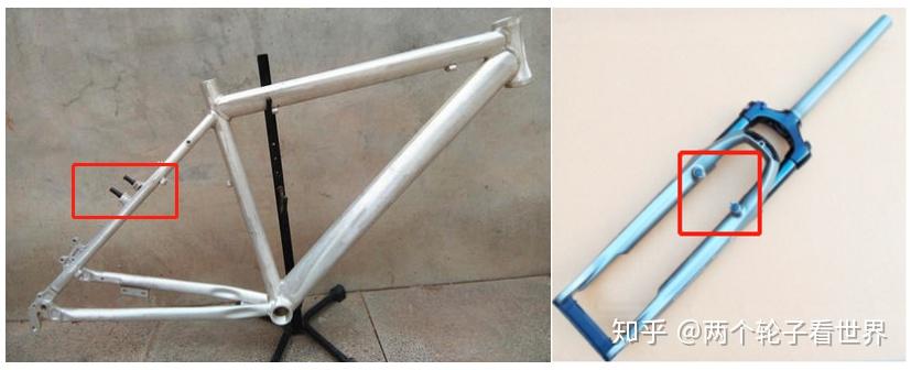 图片来源网络,侵删后上叉和前叉上也需要有安装V刹的V刹座,或者安装V刹座的预留孔。