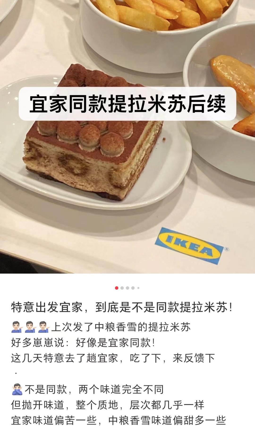 于是,在这个“万物皆可平替”的时代,网友们通过丰富的经验,迅速找到了星巴克、宜家等售卖的提拉米苏的平替,并通过味蕾进行精密测评。