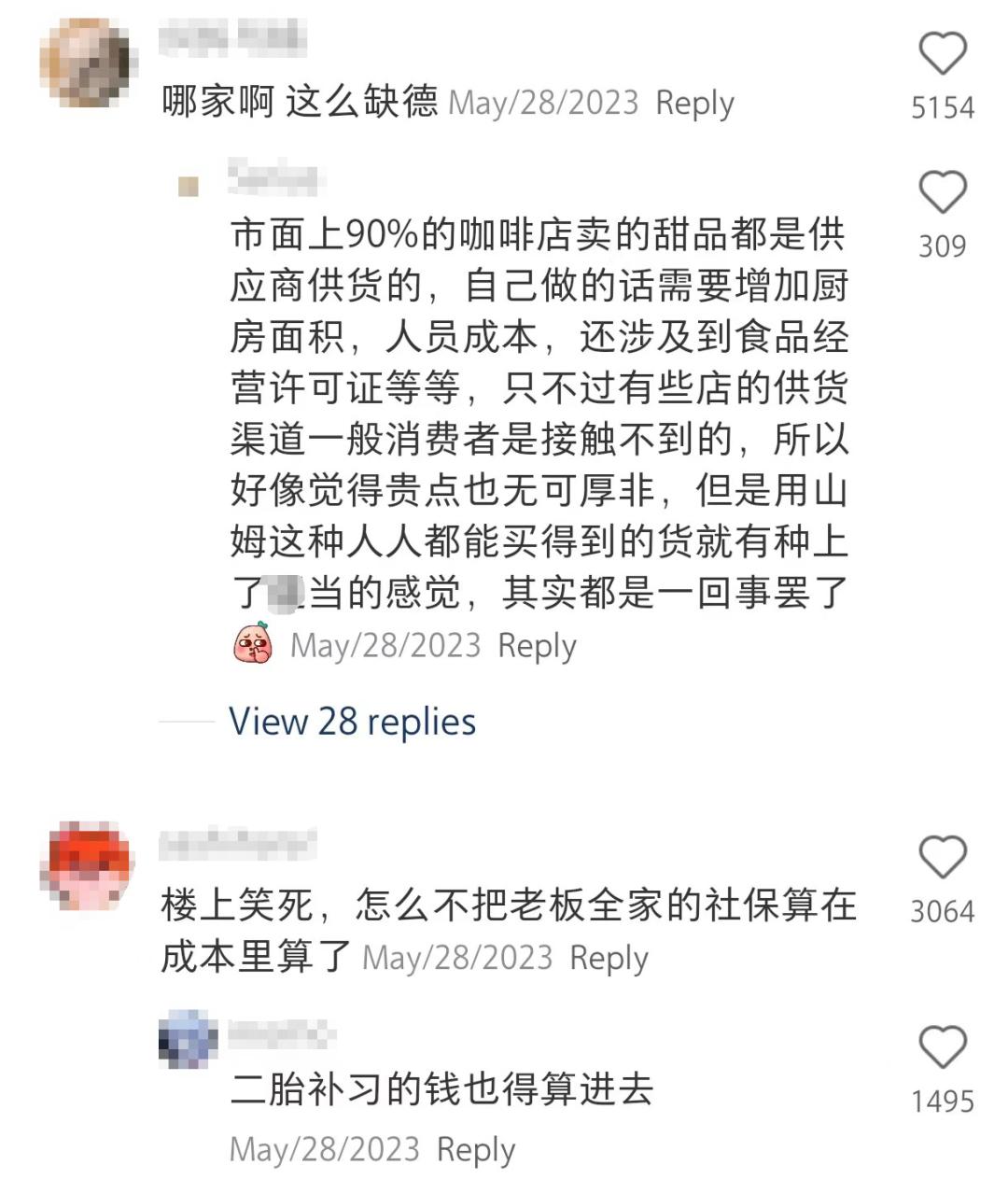 不少咖啡厅选择售卖这种千篇一律的“预制”蛋糕,背后的原因无非是想降本增效。餐饮行业光是房租与人工成本加起来就高达30%,如今各类烘焙门店百花齐放,而食品安全对烘焙间和店面等又有严格的标准,想必现制烘焙的成本压力只多不少。