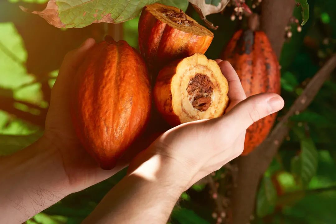 传统的巧克力,做起来还真挺麻烦的。配方主要以可可脂为主,需要先从可可树上摘下成熟的可可果。可可果实的味道其实是酸甜的,果肉呈白色,有些粘稠,和山竹有点像。每一个可可果中都包裹着 25-40 颗可可豆。