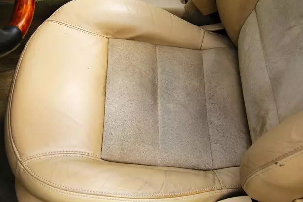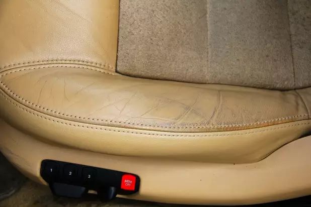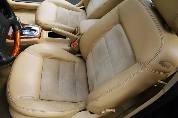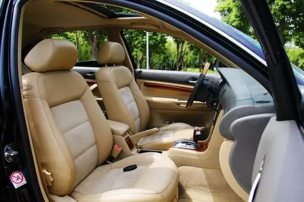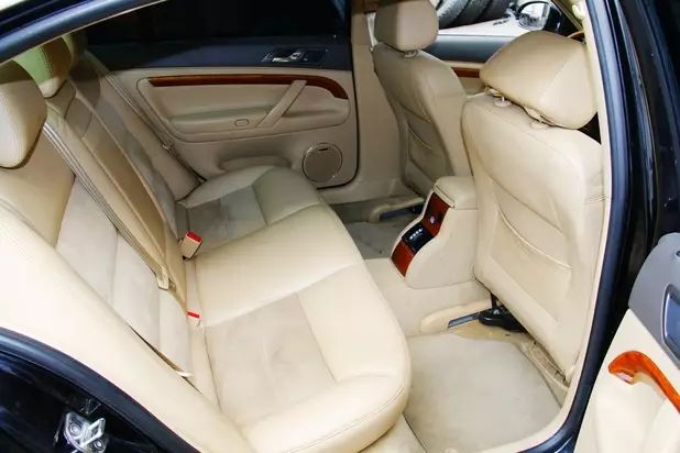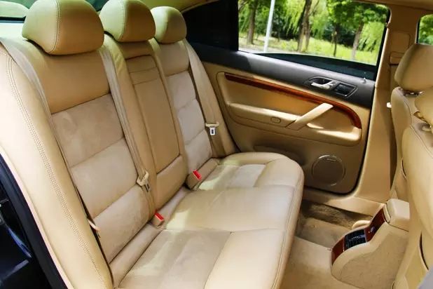 真皮/Alcantara面料镶拼座椅,就是中间那块 ,由于年头长,中间那块地方已经造的乌期麻黑,这已经是用药水洗过之后的效果,已经没法再让它变回原来的颜色,逼格降低了不少,这个镶拼座椅本来是高档的象征,但是年头长了,很难看,差评
