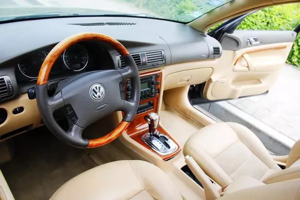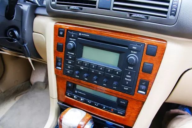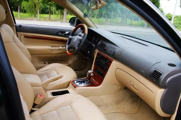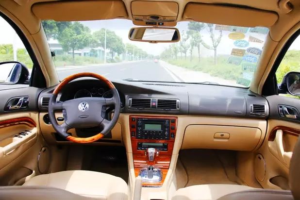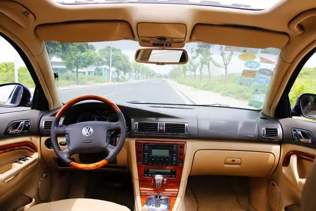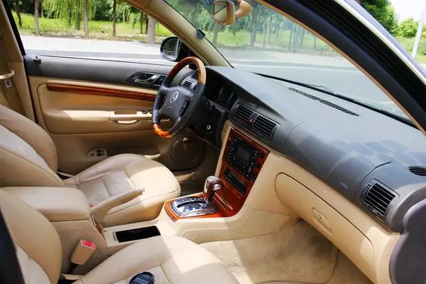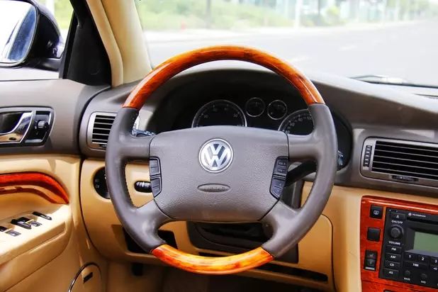 下面进入内饰环节,老帕萨特的用料为人称道,但是这个内饰,总感觉差了一点,先来个全景,中控台的样式和老B5基本差不多,桃木方向盘是亮点