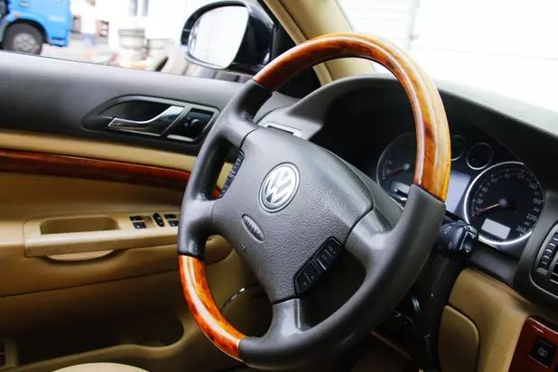 四幅的桃木方向盘,我很喜欢,帕萨特的转向轻盈,操控很好,这是德系车的精髓