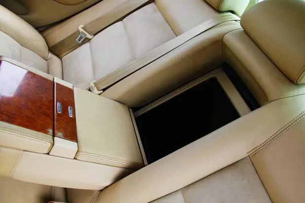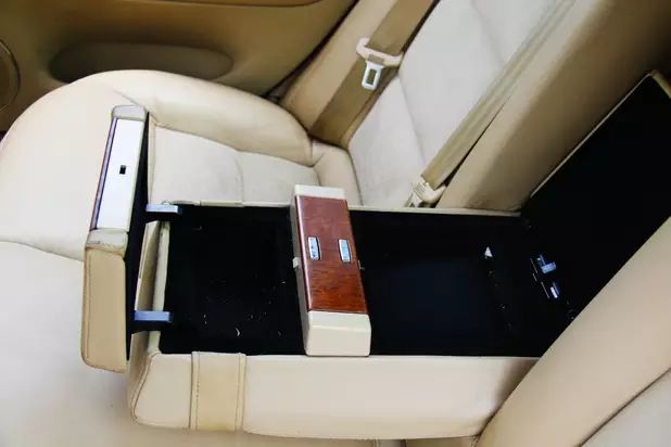 后排扶手箱看起来挺有档次,就是打开之后直接是一个大洞,跟后备箱联通了,不知道这里是不是原来有个挡板,这个大洞看起来好别扭