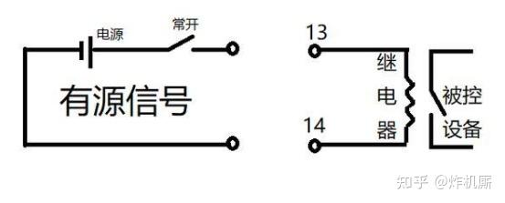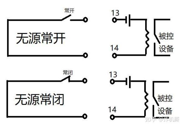 四,⽆源信号(⼲接点),分为两种,⽆源常开和⽆源常闭,如下图: