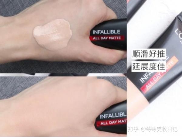 珀莱雅日不落粉底液油皮版柔雾型的妆效,这个粉底液带小样,出门很方便,还送发带和美妆蛋,就很实用。(2)欧莱雅吸油棒粉底液
