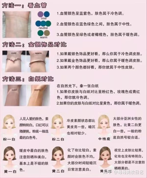 肤色判断明白自己的肤色,是为了选择合适的粉底液色号,避免假白、脸和脖子不是一个色的情况出现。一般情况下,选择相同色号的粉底液或者白一个色号。