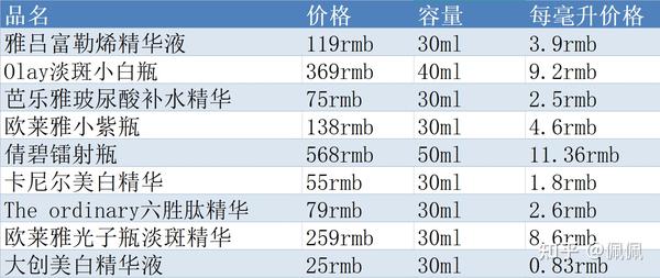 既然要测试价格,那就要精打细算,算到每一毫升的价格差别。
