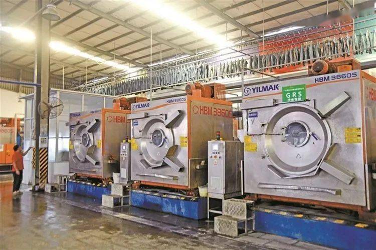 值得一提的是,洗水后的牛仔裤经脱水后并不是直接送进烘干机,而是通过传送带,利用烘干机产生的约四五十摄氏度废气余热进行烘干,最大限度地节省了能量消耗。