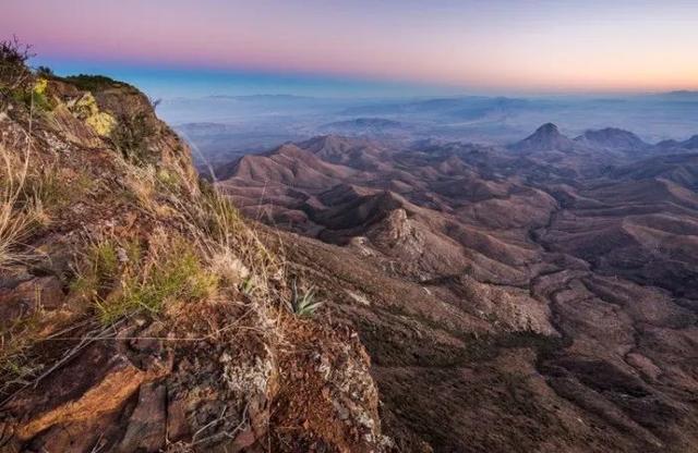 广角镜头使前景处植物和岩石显得更大,同时缩小了背景中的山脉。
