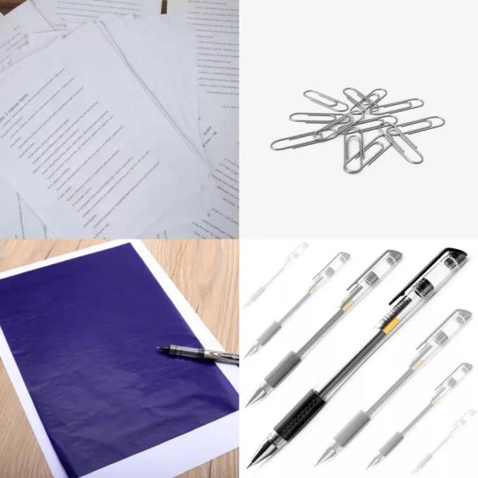 圆珠笔、印泥、胶水、透明胶、回形针、订书针、便利贴等