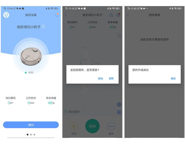 可以给扫地机器人改成你喜欢的名字,然后app提示你更新固件。现在的扫地机器人都很智能,可以通过app升级机器的固件,改善机器性能,修正一些问题。